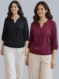 Pack Of 2 Black and Wine Viscose Waist-Fit Tops