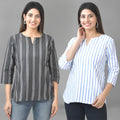 Our Set of Two Striped Cotton Women Tops Combo offers unmatched comfort and style. For stylish ladies who value both cost and quality, these contemporary tops are ideal. These tops, which are made of soft and lightweight cotton, have a timeless striped pattern that elevates any outfit. These tops are adaptable for any occasion with a flattering fit and a robust design. With this essential set, you can up your style ante while maintaining comfort. Get our Striped Cotton Women Tops Combo today to stand out From The Crowd.