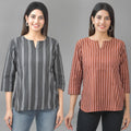 Our Set of Two Striped Cotton Women Tops Combo offers unmatched comfort and style. For stylish ladies who value both cost and quality, these contemporary tops are ideal. These tops, which are made of soft and lightweight cotton, have a timeless striped pattern that elevates any outfit. These tops are adaptable for any occasion with a flattering fit and a robust design. With this essential set, you can up your style ante while maintaining comfort. Get our Striped Cotton Women Tops Combo today to stand out From The Crowd.
