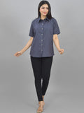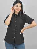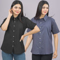 Pack Of 2 Womens Solid Black And Grey Half Sleeve Cotton Shirts Combo