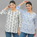 Discover the ideal combination of style and comfort with our Pack Of 2 Womens Regular Fit Tops Combo. Embrace the essence of fashion with appealing floral, tribal, vector, and zigzag prints that bring a splash of excitement to your outfit. These tops are made of quality cotton and are breathable and cosy all day. The round neck with a V-cut enhances your neckline, giving you a sleek and modern look. Elevate your fashion quotient easy with these adaptable short kurti tops that move from casual outings to semi formal occasions. Shop now to update your look with the latest fashion trends for women!