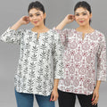 Discover the ideal combination of style and comfort with our Pack Of 2 Womens Regular Fit Tops Combo. Embrace the essence of fashion with appealing floral, tribal, vector, and zigzag prints that bring a splash of excitement to your outfit. These tops are made of quality cotton and are breathable and cosy all day. The round neck with a V-cut enhances your neckline, giving you a sleek and modern look. Elevate your fashion quotient easy with these adaptable short kurti tops that move from casual outings to semi formal occasions. Shop now to update your look with the latest fashion trends for women!