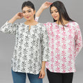Pack Of 2 Womens Regular Fit Black Leaf And Pink Leaf Printed Tops Combo