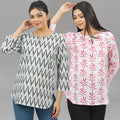 Pack Of 2 Womens Regular Fit Black Zig Zag And Pink Leaf Printed Tops Combo
