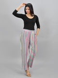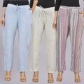 Pack Of 3 Womens Blue, Cream, Multicolor Cotton Stripe Trousers Combo