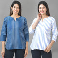 Pack Of 2 Dark Blue And Blue Dark Striped Cotton Womens Top Combo