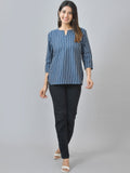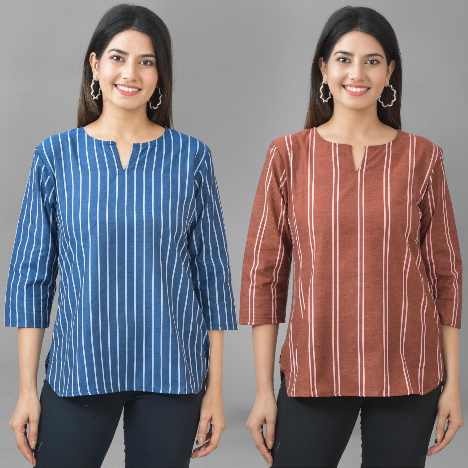Pack Of 2 Dark Blue And Brown Striped Cotton Womens Top Combo