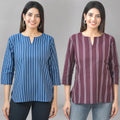 Pack Of 2 Dark Blue And Dark Coffee Striped Cotton Womens Top Combo