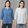 Pack Of 2 Dark Blue And Grey Striped Cotton Womens Top Combo