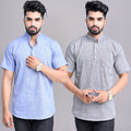 Pack of 2 Mens Solid Blue And Grey Khadi Cotton Short Kurta Combo