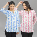 Pack Of 2 Womens Regular Fit Blue Leaf And Pink Leaf Printed Tops Combo