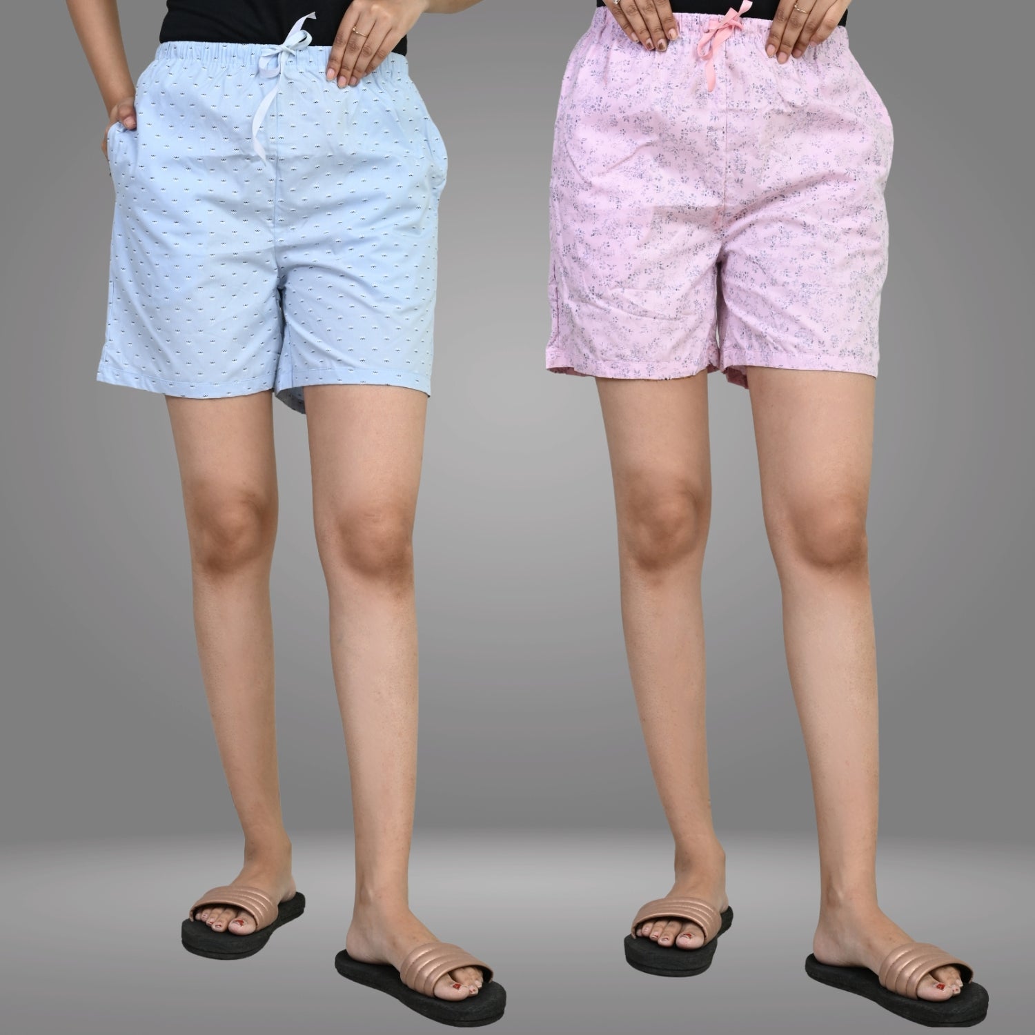 Pack Of 2 Womens Blue And Light Pink Printed Short Combo