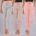 These Pack Of 3 Womens Cotton Stripe Trousers Combo, are created to offer both comfort and fashion, Which will elevate your sense of style. These stylish trousers have a regular fit and are made from Cotton fabric for all-day comfort. For added convenience, They have a drawstring at the front and back elastic waist which offers an adjustable and personalised fit. These are ideal for both casual and formal events because of its stylish striped pattern, which adds a dash of sophistication. Pack Of 3 Womens Cotton Stripe Trousers with Drawstring and Back Elastic Waist are available to purchase right away on Quaclo to update your wardrobe.