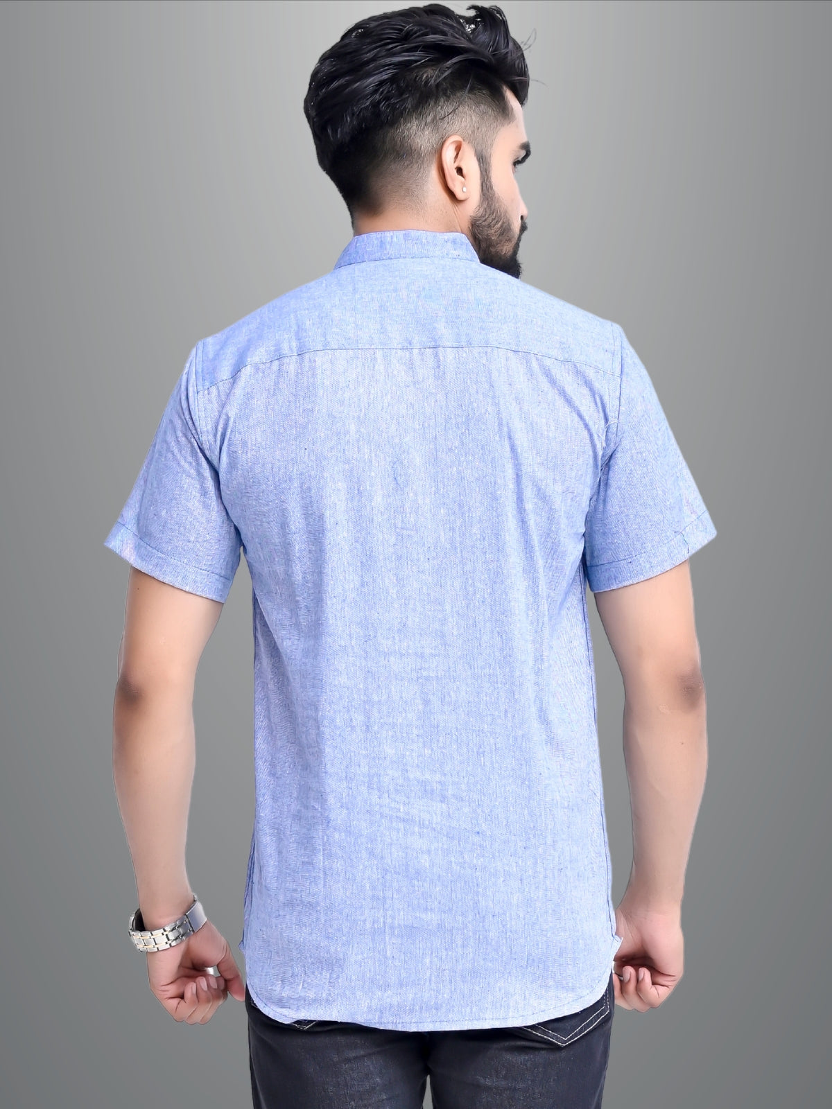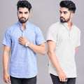 Pack of 2 Mens Solid Blue And Melange Grey Khadi Cotton Short Kurta Combo