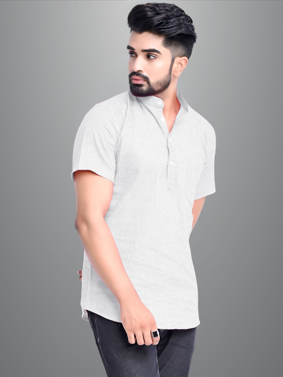 This Pack of 2 QuaClo Men's Solid Khadi Cotton Straight Kurta Combo can help you update your wardrobe. These kurtas offer the ideal balance of fashion and comfort because they are made using khadi cotton fabric. They are appropriate for a variety of events, from casual outings to festive occasions, thanks to its self-design pattern, which gives a touch of luxury. The breathable fabric keeps you cool all day, and the straight fit style guarantees a flattering and comfortable fit. Two kurtas are included in this combo pack, allowing you to mix and match them with various bottoms for a fashionable and adaptable style. Improve your ethnic look with this QuaClo combo pack!