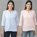 Our Set of Two Striped Cotton Women Tops Combo offers unmatched comfort and style. For stylish ladies who value both cost and quality, these contemporary tops are ideal. These tops, which are made of soft and lightweight cotton, have a timeless striped pattern that elevates any outfit. These tops are adaptable for any occasion with a flattering fit and a robust design. With this essential set, you can up your style ante while maintaining comfort. Get our Striped Cotton Women Tops Combo today to stand out From The Crowd.