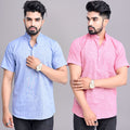 Pack of 2 Mens Solid Blue And Pink Khadi Cotton Short Kurta Combo