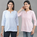 Pack Of 2 Blue And Pink Striped Cotton Womens Top Combo