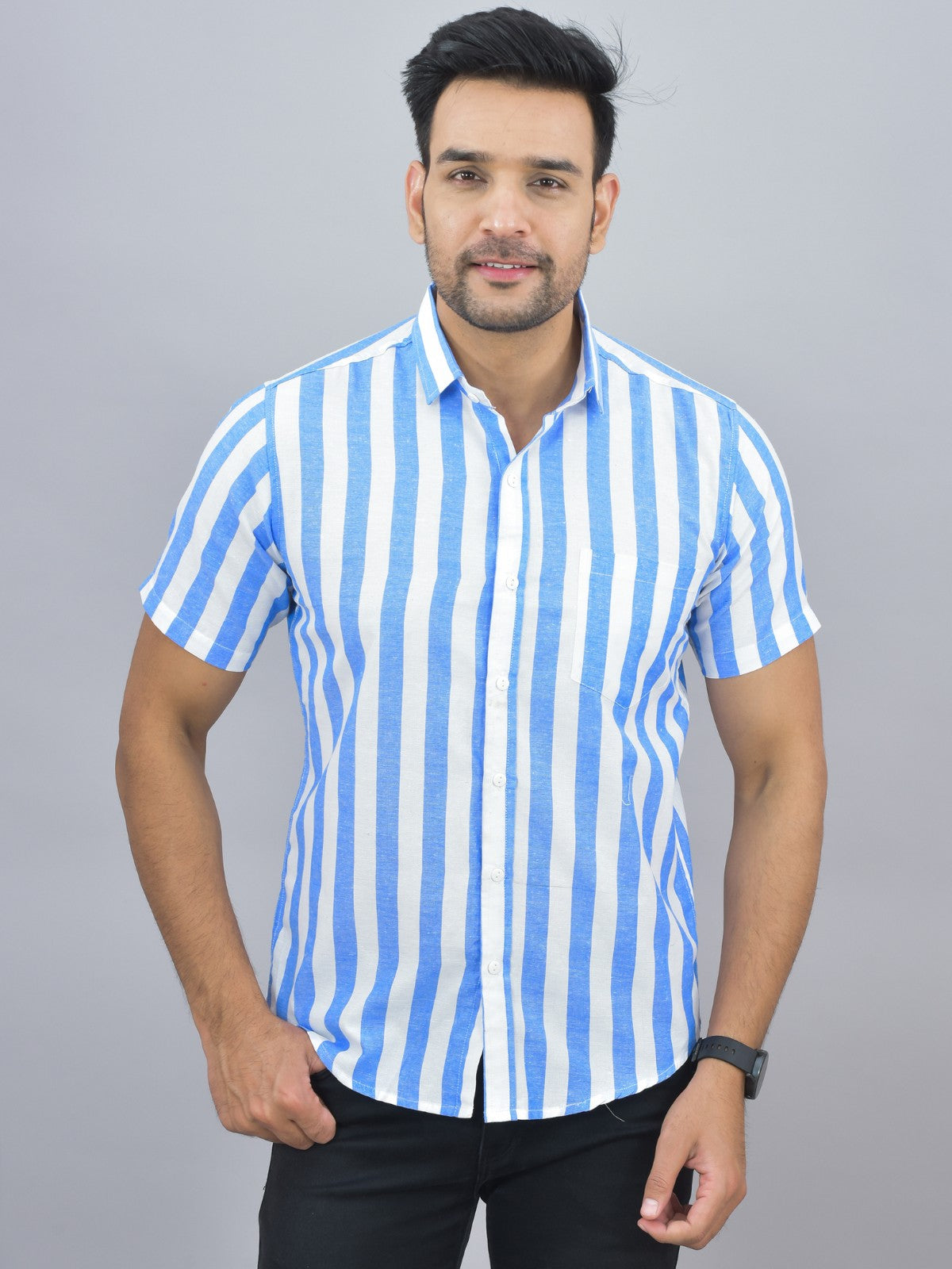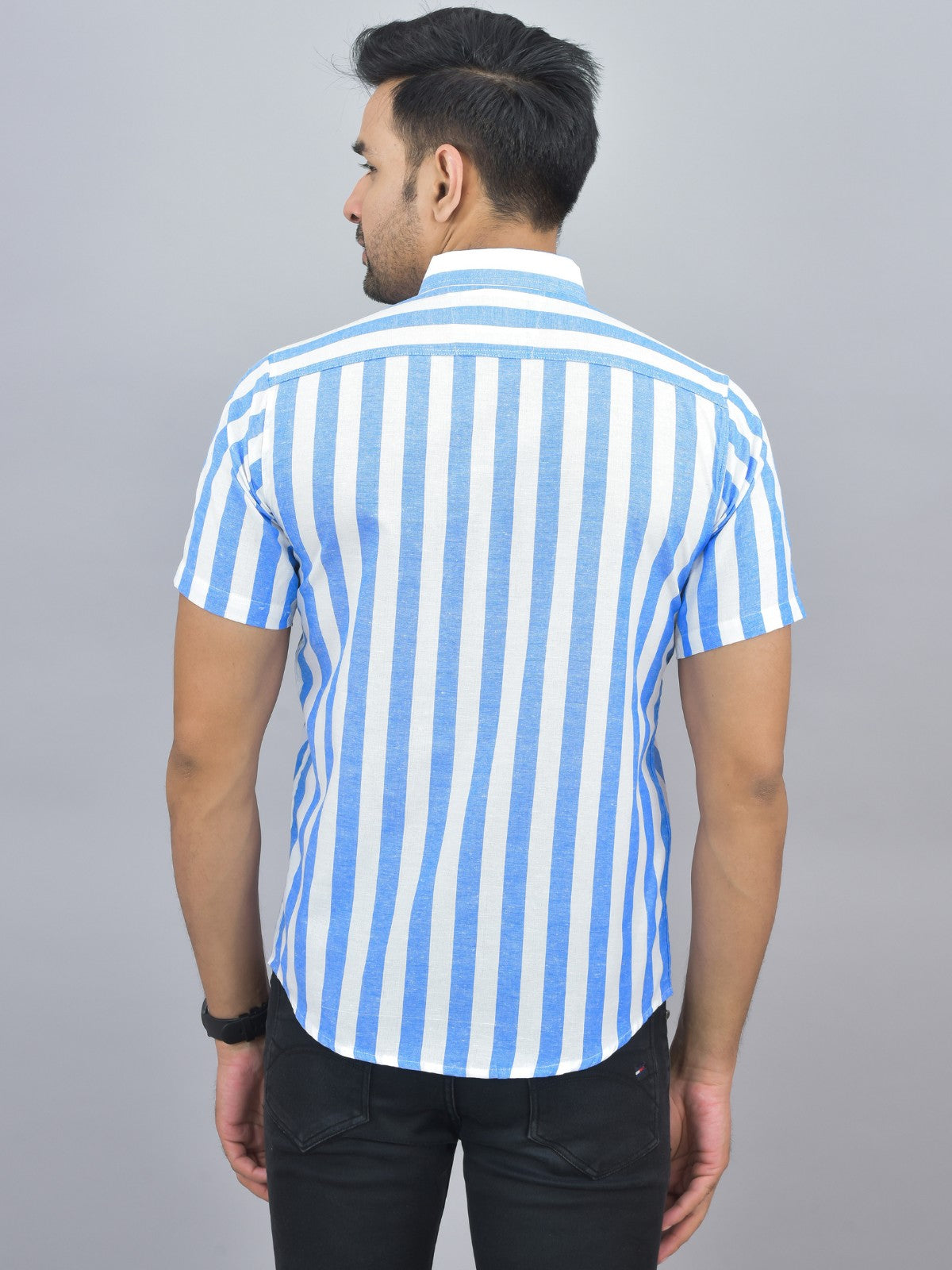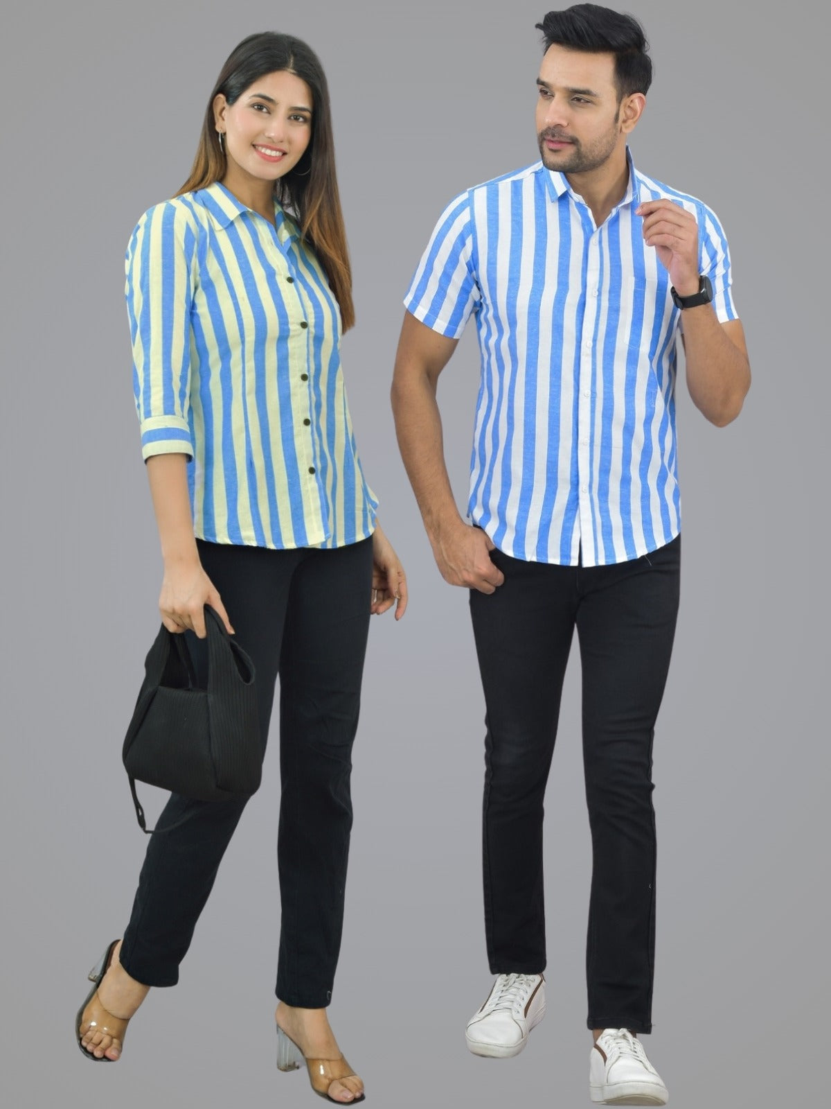 Pack Of 2 Quaclo Couple Blue Striped Cotton Shirts