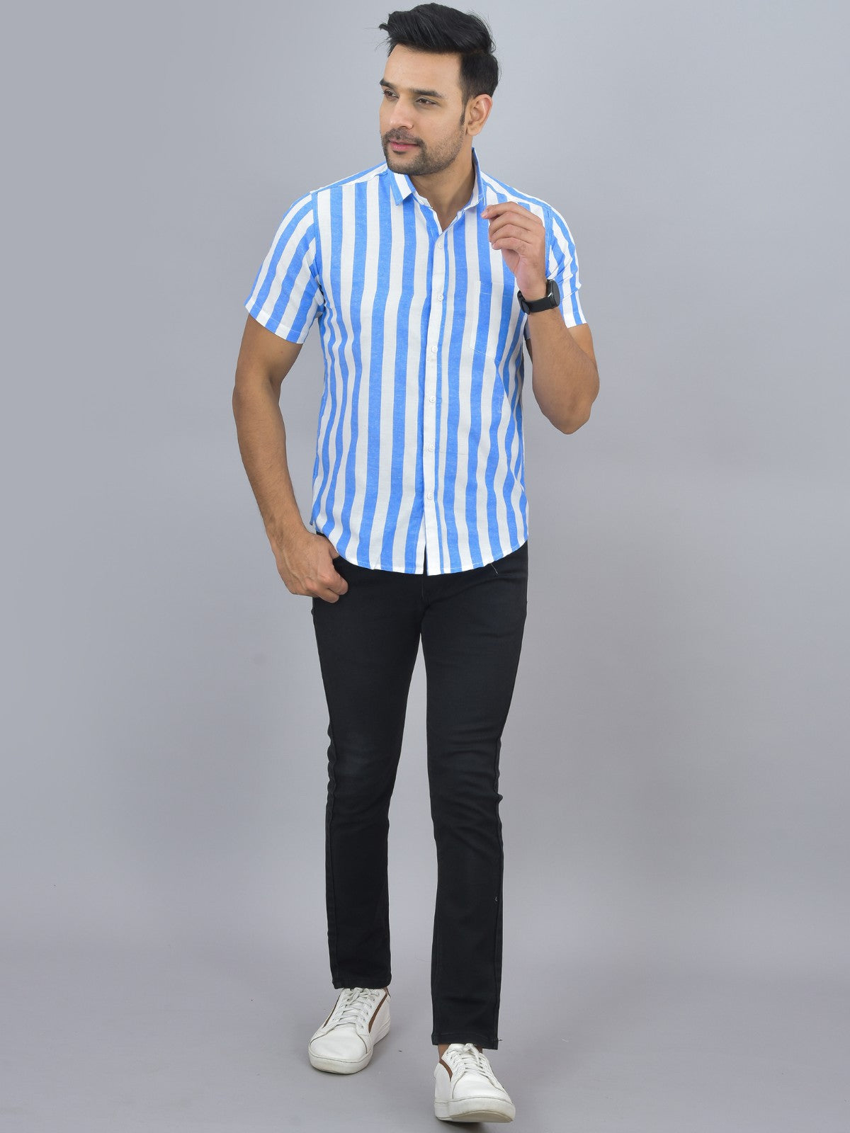 Indulge in comfort and elegance with our Cotton Stripe Shirt, a wardrobe staple that effortlessly combines refinement with relaxation. The shirt's quality cotton construction ensures comfortable, breathable wear all day. Regular shape guarantees a flexible silhouette perfect for any setting, while spread collar offers a touch of classic elegance. The closing buttons, which were carefully selected for both strength and beauty, provide this timeless item a solid finish. Savor the silky feel of cotton against your skin as you relish its mild softness and breathability, which make this shirt a versatile option for both informal and formal occasions. Enhance your regular outfit selection by incorporating the ideal balance of ease and style.