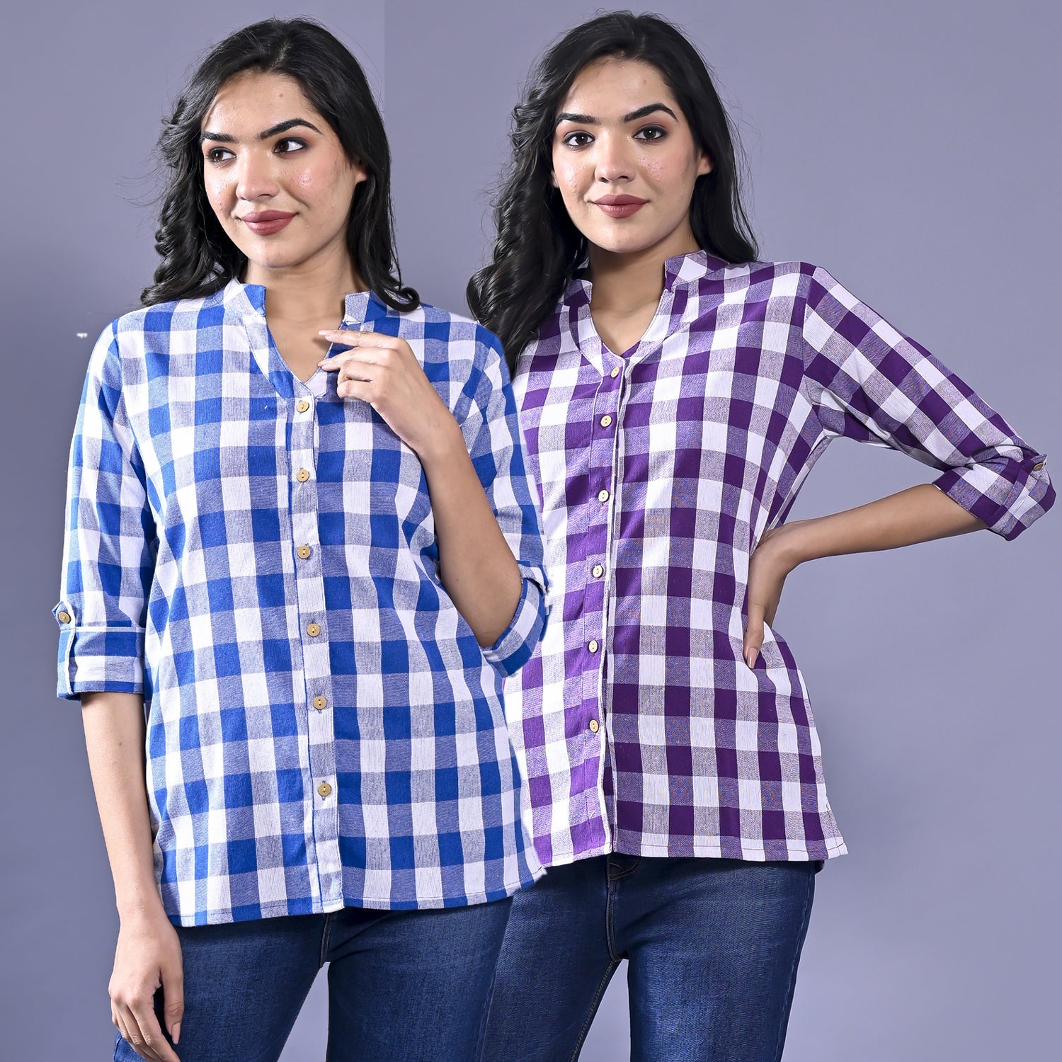 Pack Of 2 Womens Blue And Purple Chekerd Casual Shirt Combo