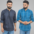 Pack Of 2 Mens Blue And Teal Blue Wide Check Cotton Short Kurta Combo