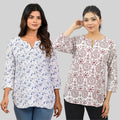 Pack Of 2 Womens Regular Fit Blue Vactor And Maroon Tribal Printed Tops Combo