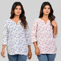 Discover the ideal combination of style and comfort with our Womens Regular Fit Short Kurti/Tops Combo. Embrace the essence of fashion with appealing floral, tribal, vector, and zigzag prints that bring a splash of excitement to your outfit. These tops are made of quality cotton and are breathable and cosy all day. The round neck with a V-cut enhances your neckline, giving you a sleek and modern look. Elevate your fashion quotient easy with these adaptable short kurti tops that move from casual outings to semi formal occasions. Shop now to update your look with the latest fashion trends for women!