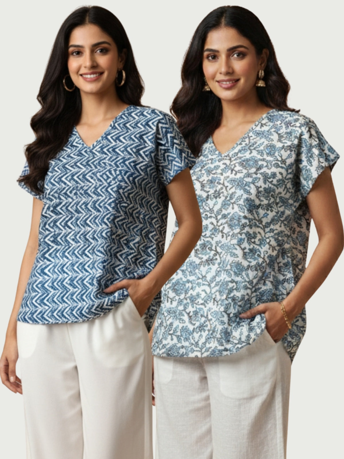 Discover our women’s Airy Linen Printed Cotton Tops, designed for effortless comfort and everyday elegance. Crafted from breathable airy linen cotton fabric, this top keeps you cool and stylish all day long. The V-neck collar adds a flattering touch, while the bottom side cut enhances ease of movement and a modern look. Featuring charming printed designs and half sleeves, this top blends comfort with chic appeal. Perfect for casual outings, office wear, or weekend styling, it pairs beautifully with jeans, trousers, or skirts. Embrace lightweight comfort and timeless fashion with our Airy Linen Printed Cotton Top for women.