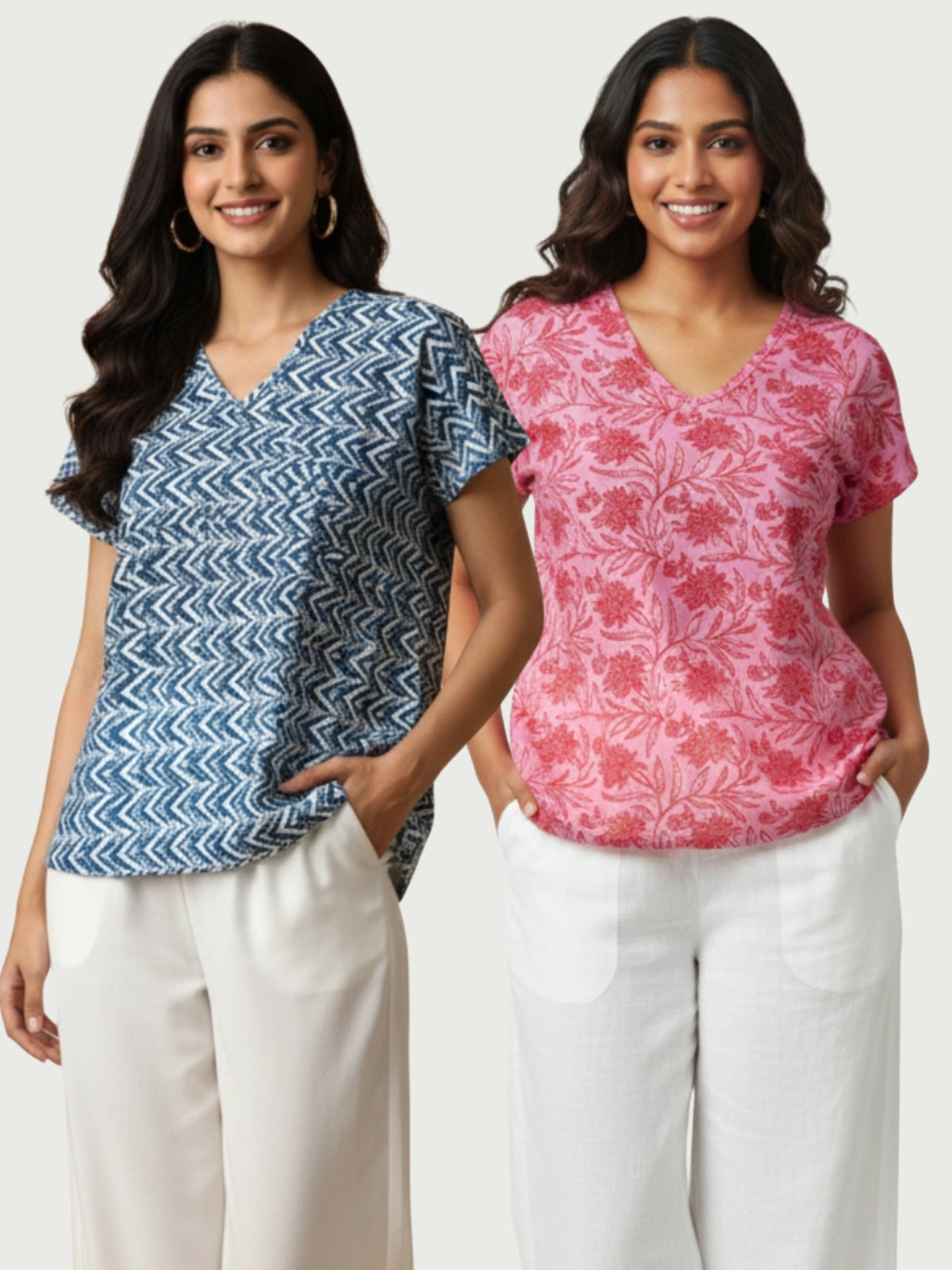Discover our women’s Airy Linen Printed Cotton Tops, designed for effortless comfort and everyday elegance. Crafted from breathable airy linen cotton fabric, this top keeps you cool and stylish all day long. The V-neck collar adds a flattering touch, while the bottom side cut enhances ease of movement and a modern look. Featuring charming printed designs and half sleeves, this top blends comfort with chic appeal. Perfect for casual outings, office wear, or weekend styling, it pairs beautifully with jeans, trousers, or skirts. Embrace lightweight comfort and timeless fashion with our Airy Linen Printed Cotton Top for women.