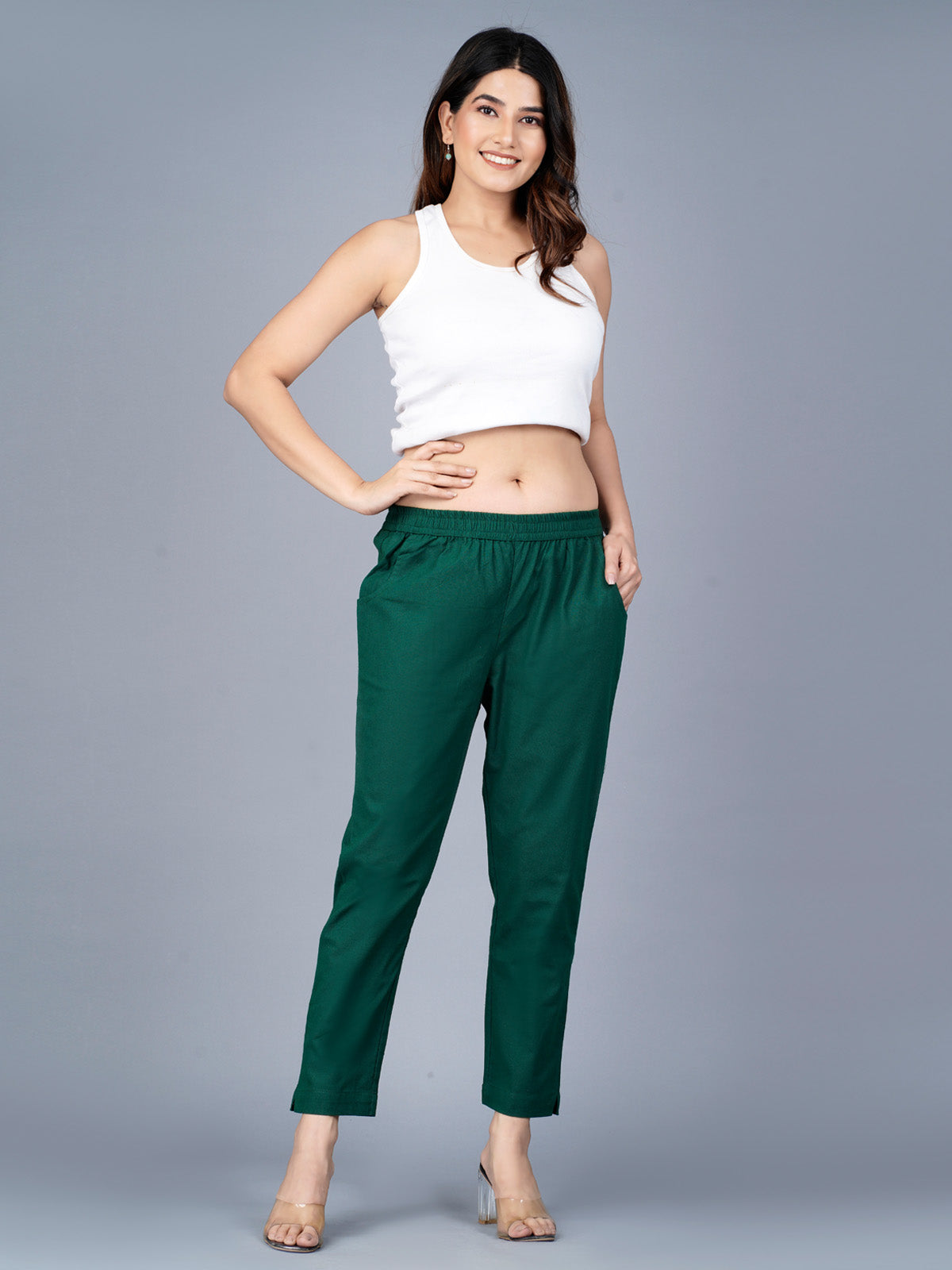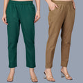 Pack Of 2 Womens Regular Fit Bottle Green And Brown Fully Elastic Waistband Cotton Trouser