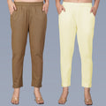 Pack Of 2 Womens Regular Fit Brown And Cream Fully Elastic Waistband Cotton Trouser
