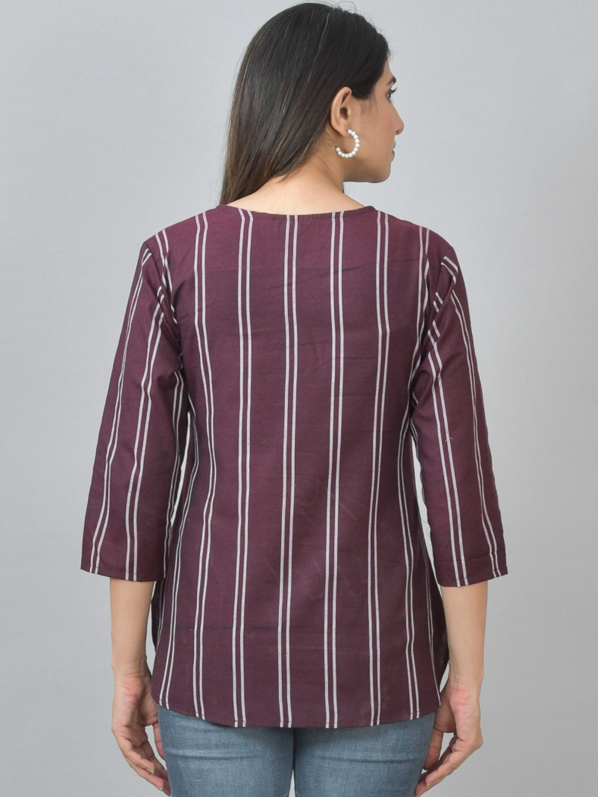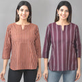 Pack Of 2 Dark Brown And Coffee Striped Cotton Womens Top Combo