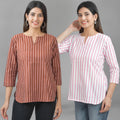 Our Set of Two Striped Cotton Women Tops Combo offers unmatched comfort and style. For stylish ladies who value both cost and quality, these contemporary tops are ideal. These tops, which are made of soft and lightweight cotton, have a timeless striped pattern that elevates any outfit. These tops are adaptable for any occasion with a flattering fit and a robust design. With this essential set, you can up your style ante while maintaining comfort. Get our Striped Cotton Women Tops Combo today to stand out From The Crowd.