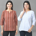 Pack Of 2 Brown And Blue Striped Cotton Womens Top Combo