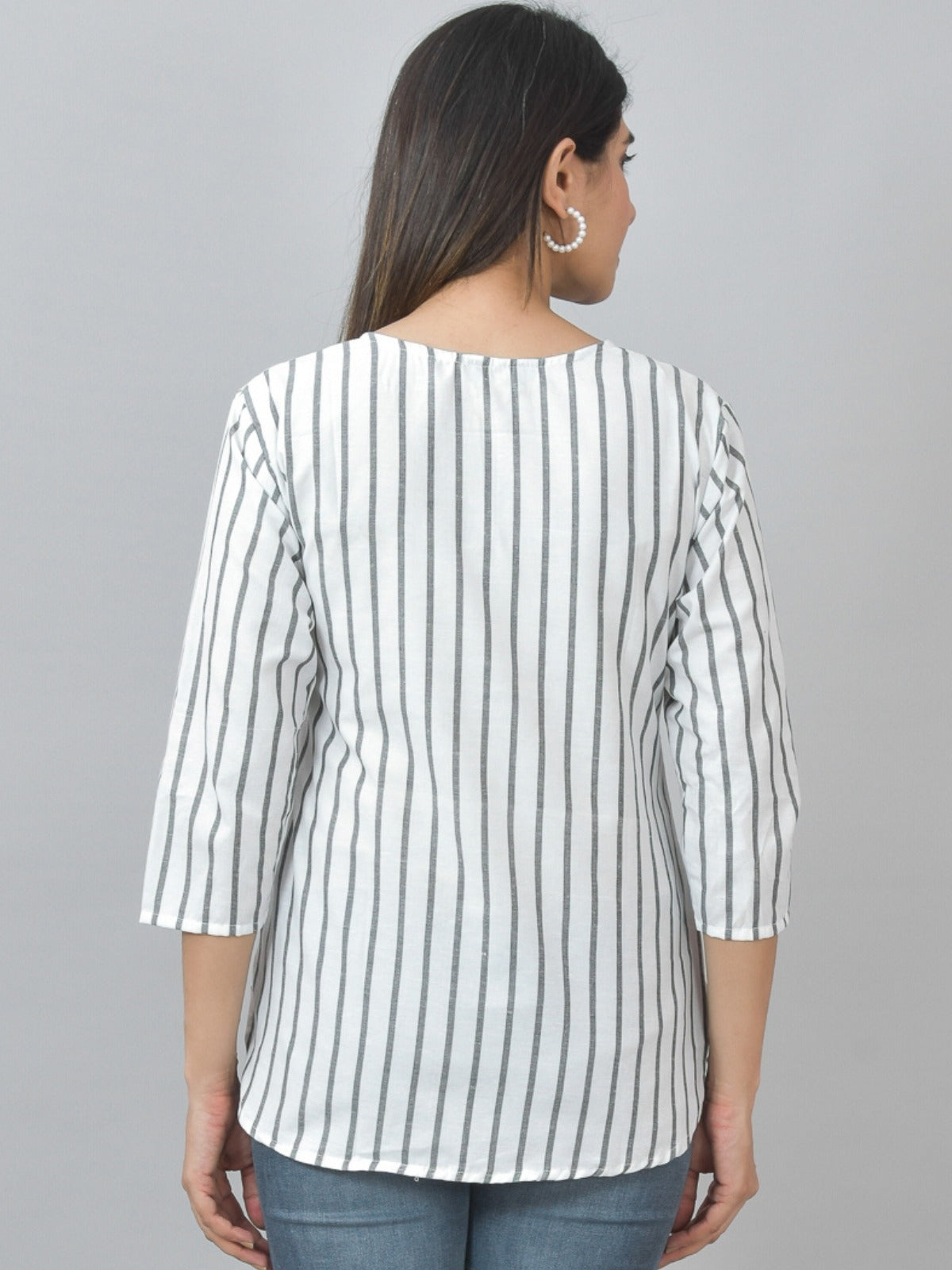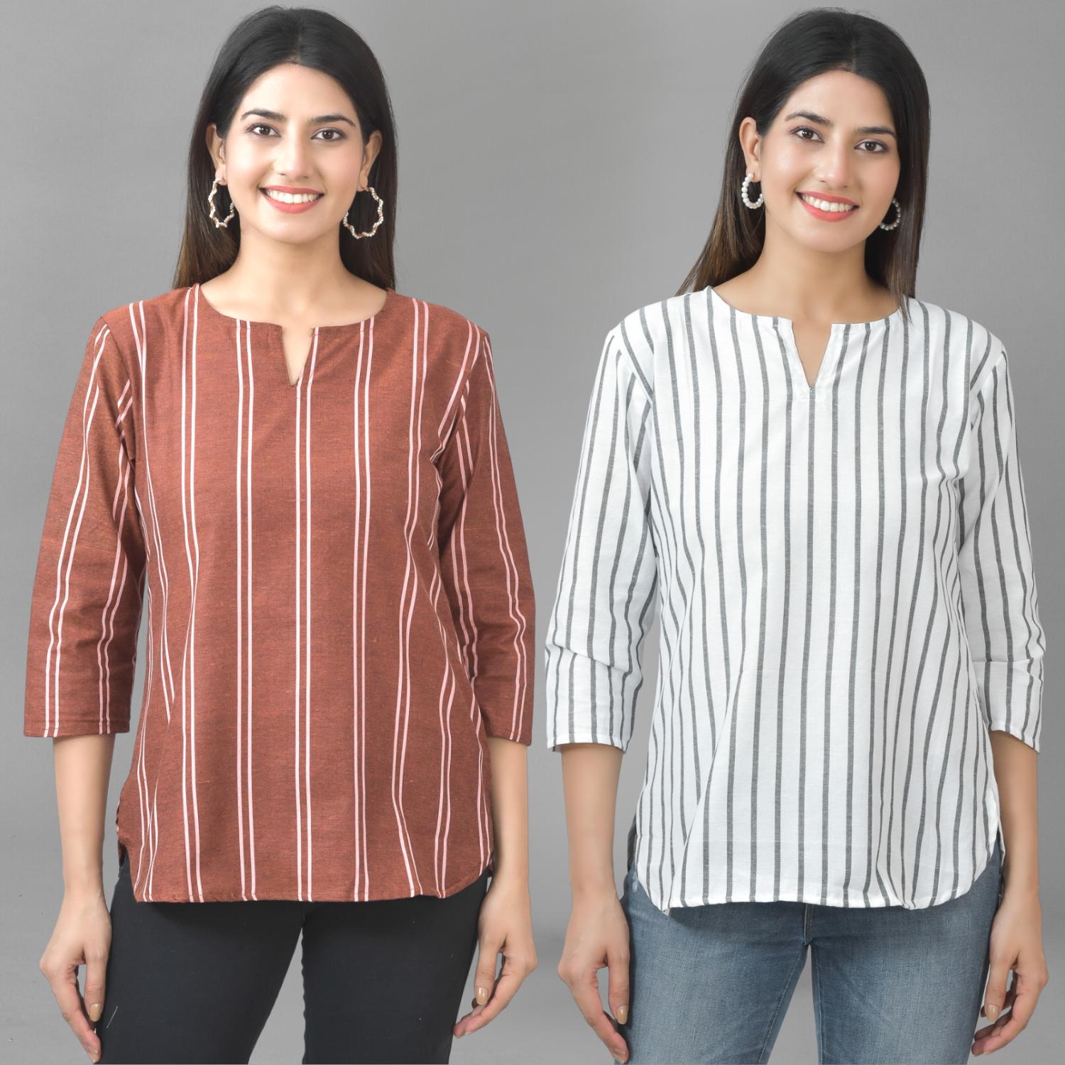 Our Set of Two Striped Cotton Women Tops Combo offers unmatched comfort and style. For stylish ladies who value both cost and quality, these contemporary tops are ideal. These tops, which are made of soft and lightweight cotton, have a timeless striped pattern that elevates any outfit. These tops are adaptable for any occasion with a flattering fit and a robust design. With this essential set, you can up your style ante while maintaining comfort. Get our Striped Cotton Women Tops Combo today to stand out From The Crowd.