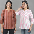 Pack Of 2 Brown And Pink Striped Cotton Womens Top Combo