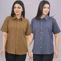 Pack Of 2 Womens Solid Brown And Grey Half Sleeve Cotton Shirts Combo
