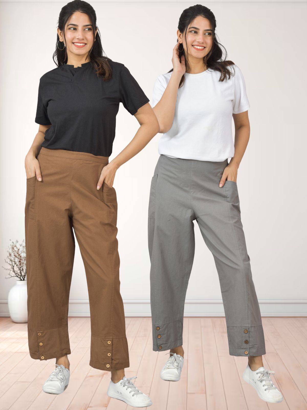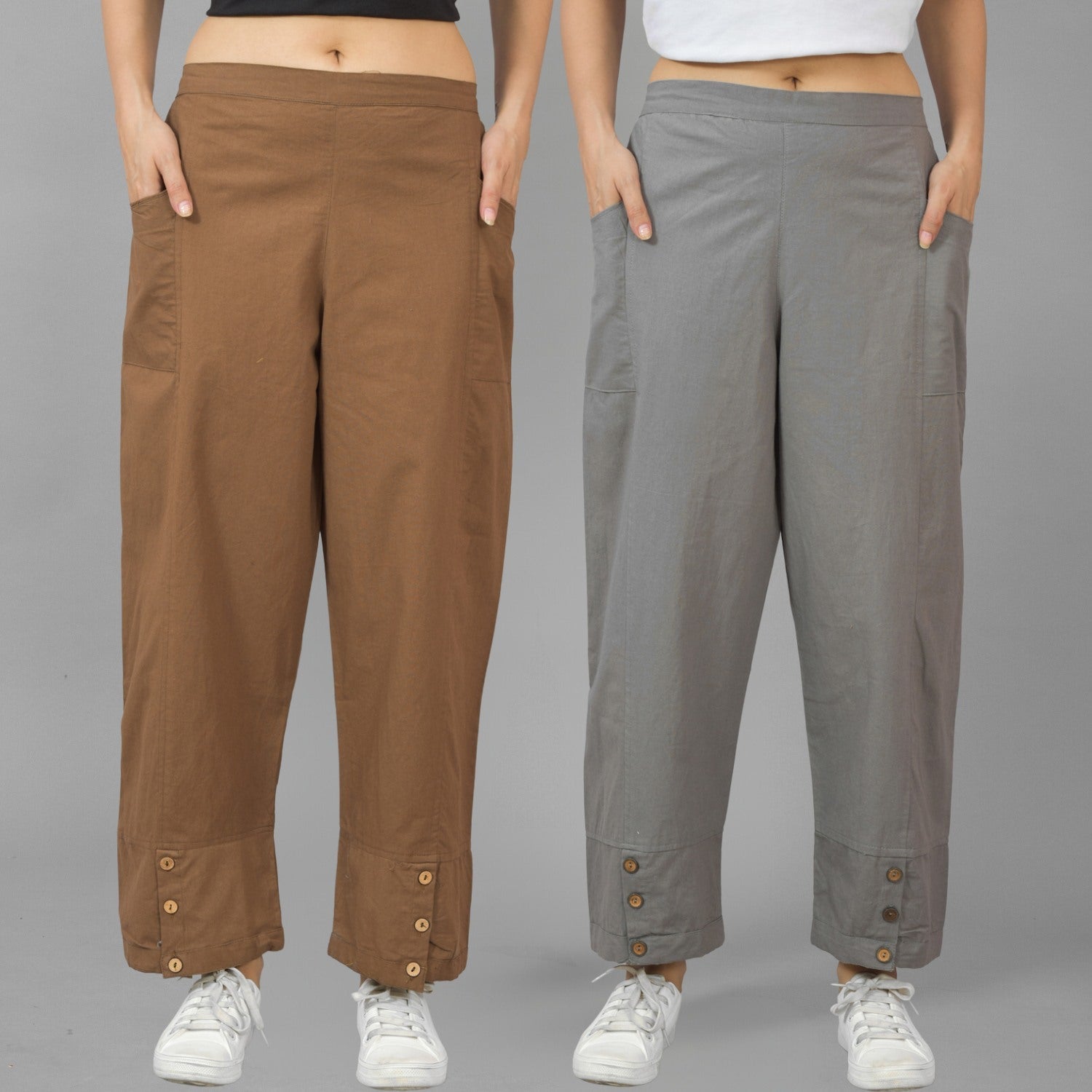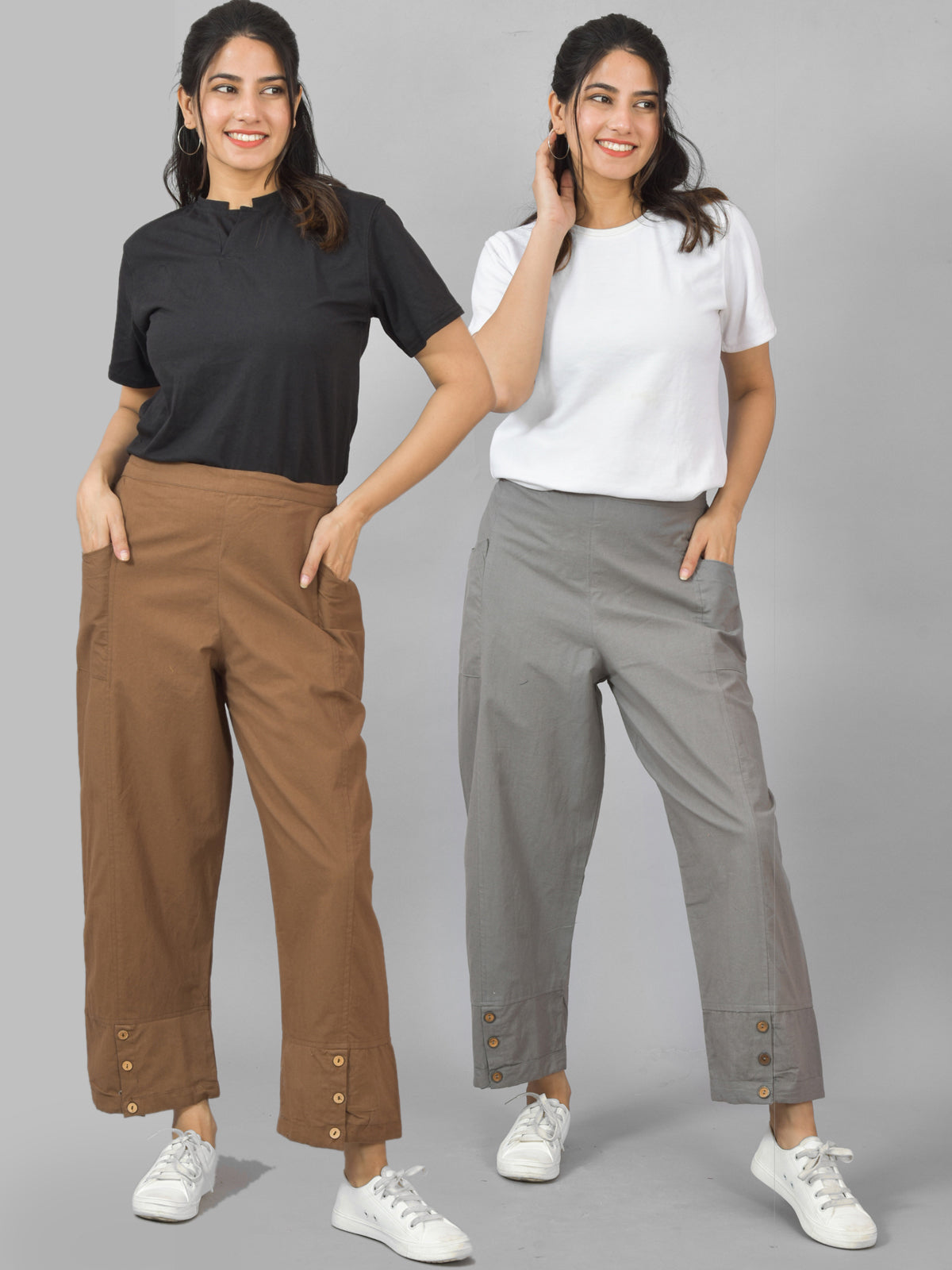 Combo Pack Of Womens Brown And Grey Side Pocket Straight Cargo Pants