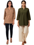 Pack Of 2 Womens Regular Fit Brown And Mehendi Green Three Fourth Sleeve Cotton Tops Combo