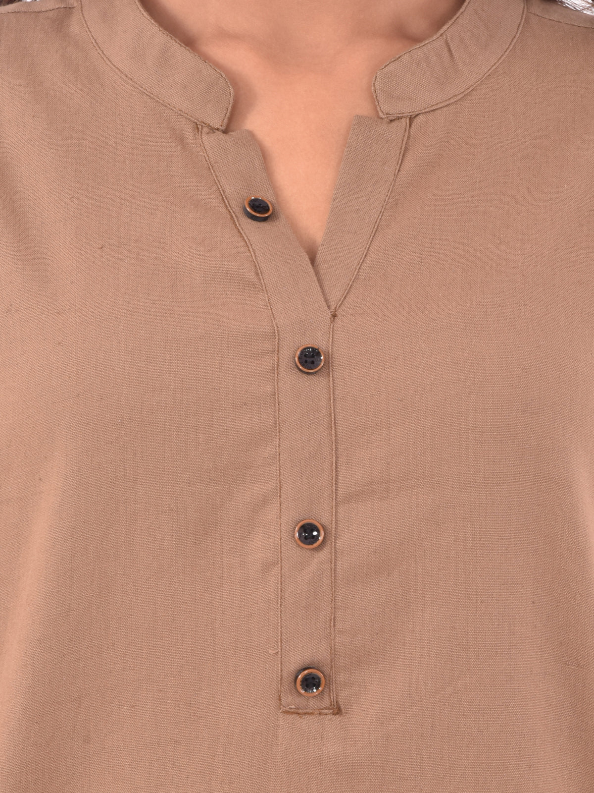 This Pack Of 2 Women's Solid Top Combo, is the ideal fusion of comfort and design, These will upgrade your wardrobe, made from a high-quality cotton that keeps you comfortable all day. Your outfit is made more sophisticated by the tasteful design. These adaptable tops is the perfect pick whether you're going to the office, on a casual trip, or to a weekend brunch. It radiates classic appeal and ups your fashion game, complete with a chinese/mandarin collar. The Women's Solid Top Combo can help you achieve modern elegance right away.