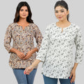 Pack Of 2 Womens Regular Fit Brown Multi Printed And Black Vactor Printed Tops Combo