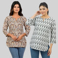 Discover the ideal combination of style and comfort with our Womens Regular Fit Short Kurti/Tops Combo. Embrace the essence of fashion with appealing floral, tribal, vector, and zigzag prints that bring a splash of excitement to your outfit. These tops are made of quality cotton and are breathable and cosy all day. The round neck with a V-cut enhances your neckline, giving you a sleek and modern look. Elevate your fashion quotient easy with these adaptable short kurti tops that move from casual outings to semi formal occasions. Shop now to update your look with the latest fashion trends for women!