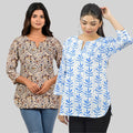 Pack Of 2 Womens Regular Fit Brown Multi Printed And Blue Leaf Printed Tops Combo