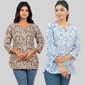 Discover the ideal combination of style and comfort with our Womens Regular Fit Short Kurti/Tops Combo. Embrace the essence of fashion with appealing floral, tribal, vector, and zigzag prints that bring a splash of excitement to your outfit. These tops are made of quality cotton and are breathable and cosy all day. The round neck with a V-cut enhances your neckline, giving you a sleek and modern look. Elevate your fashion quotient easy with these adaptable short kurti tops that move from casual outings to semi formal occasions. Shop now to update your look with the latest fashion trends for women!