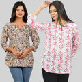 Pack Of 2 Womens Regular Fit Brown Multi Printed And Pink Leaf Printed Tops Combo