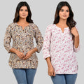 Discover the ideal combination of style and comfort with our Womens Regular Fit Short Kurti/Tops Combo. Embrace the essence of fashion with appealing floral, tribal, vector, and zigzag prints that bring a splash of excitement to your outfit. These tops are made of quality cotton and are breathable and cosy all day. The round neck with a V-cut enhances your neckline, giving you a sleek and modern look. Elevate your fashion quotient easy with these adaptable short kurti tops that move from casual outings to semi formal occasions. Shop now to update your look with the latest fashion trends for women!