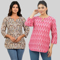 Pack Of 2 Womens Regular Fit Brown Multi Printed And Pink Zig-Zag Printed Tops Combo