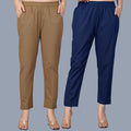 Pack Of 2 Womens Regular Fit Brown And Navy Blue Fully Elastic Waistband Cotton Trouser