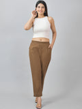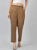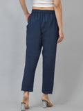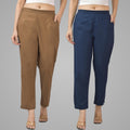 Pack Of 2 Womens Half Elastic Brown And Navy Blue Deep Pocket Cotton Pants